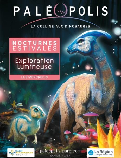 À partir du mercredi 15 juillet 2026, et chaque mercredi de l’été jusqu’au 26 août , PALEOPOLIS se transforme en un univers magique baigné de lumière et de sons, dès la tombée de la nuit et jusqu’à 23h00 !